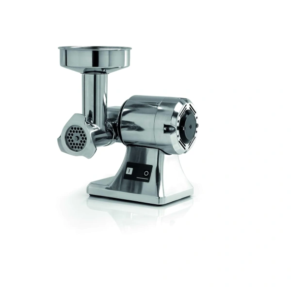 Meat Grinder, electric, 440 lb/hr production, includes stainless steel tray and #12 hub, 10″ x 8″ feed pan, 1/4″ (6mm) plate, die-cast aluminum alloy construction, 200 rpm, 1 HP, CE, Made in Italy. 1 years parts & 1 year labor warranty, standard. 110v/60/1-ph, standard