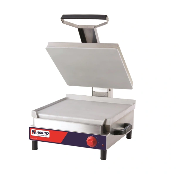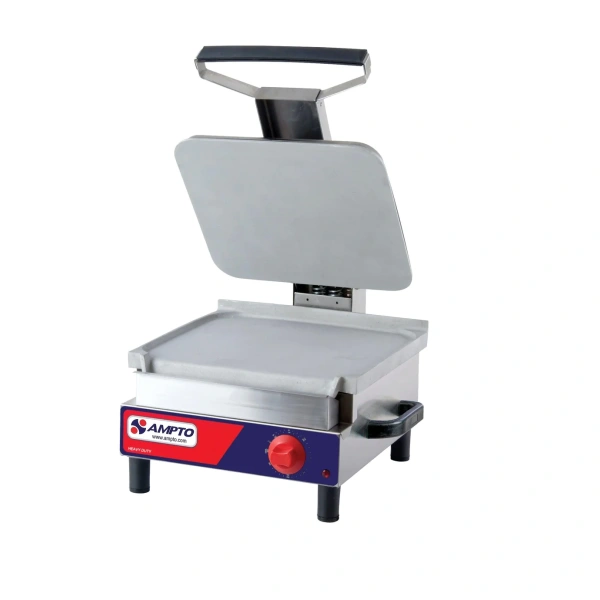 Sandwich Grill, electric, single, 17″W x 18″ D ribbed cast aluminum grid plates, adjustable temperature control, 122? – 572?F (50? – 300?C) temperature range, stainless steel construction, 120v/60/1-ph, 14.1 amps, 1550 watts, NEMA 5-15P, ETL, ETL-Sanitation. 1 years parts & 1 year labor warranty, standard