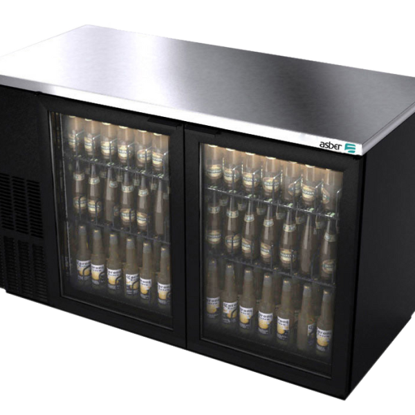 (19073705) Back Bar Cooler, 69-1/2″W x 28-5/8″D x 36-7/8″, self-contained refrigeration, two-section, (2) solid doors, (1,014) 12 oz can capacity, (4) adjustable coated wire shelves, electronic controller, fluorescent interior light, temperature from 33? to 38?F, stainless steel top, black vinyl exterior, galvanized interior with stainless steel floor, R-290 hydrocarbon refrigerant, 1/3 HP, cETLus, ETL-Sanitation, Made in North America
