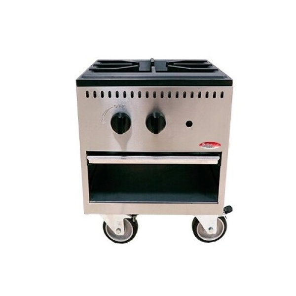 Double Burner Stock Pot, (2) 3-ring burner, drip pan, 6″ legs, independent control for each burner, (2) 18″ x 21″ cast iron grates, gas conversion kit included, 90,000 BTU each burner, cULus, UL EPH Classified. 2 Year parts and 1 Year labor warranty
